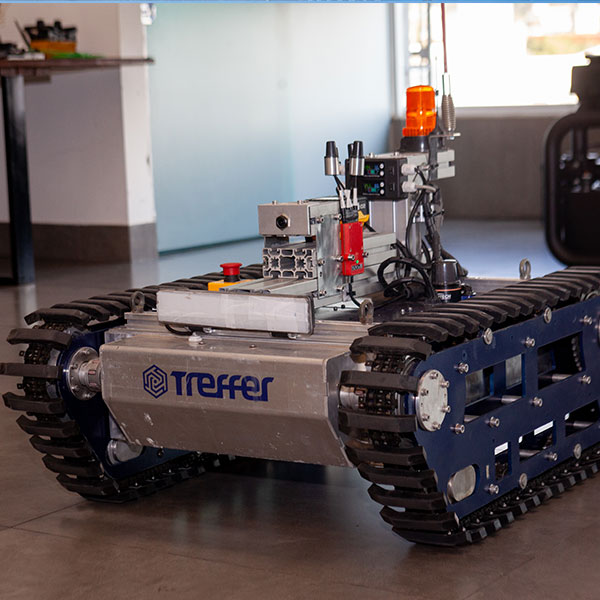 A Treffer apresenta o T-Bot, uma plataforma robótica terrestre de alto desempenho projetada para operar em ambientes críticos e desafiadores. Fabricado no Brasil, o T-Bot é uma solução versátil e robusta voltada para inspeções remotas, transporte de cargas leves, mapeamentos e ações de monitoramento em locais onde a presença humana representa risco ou limitações operacionais.